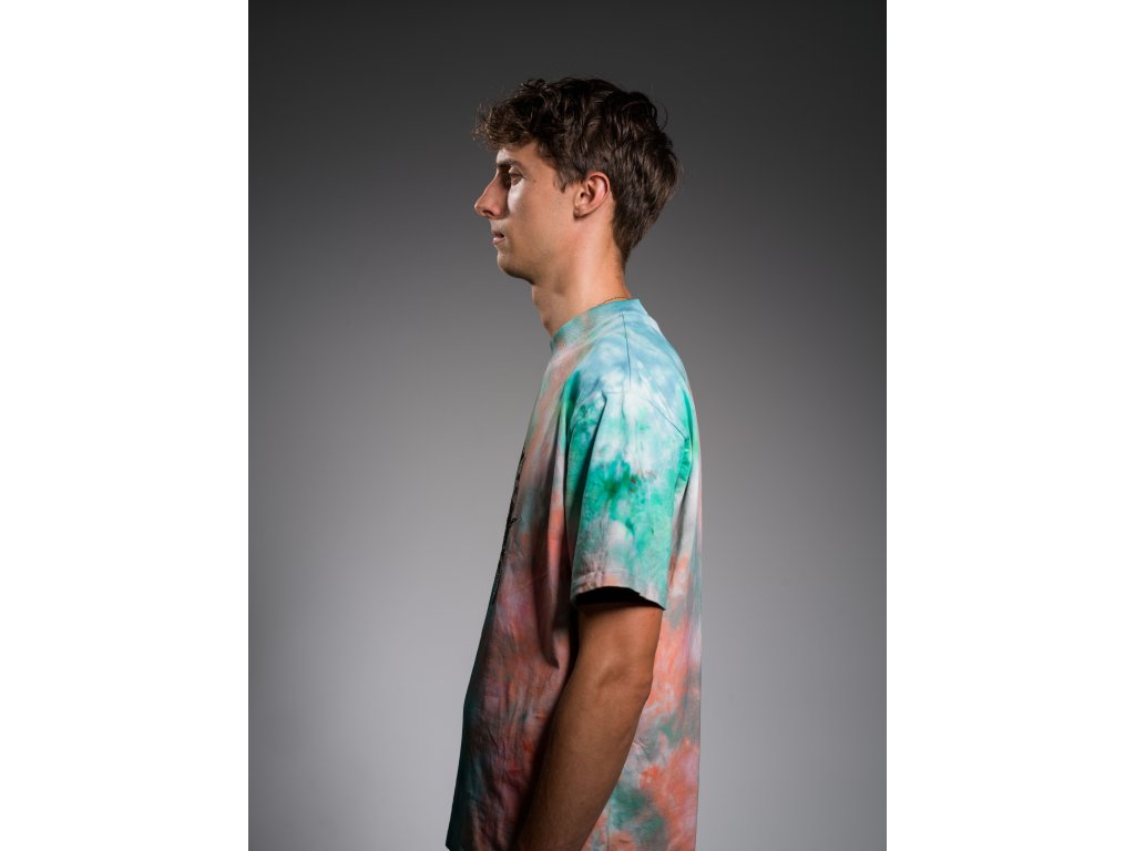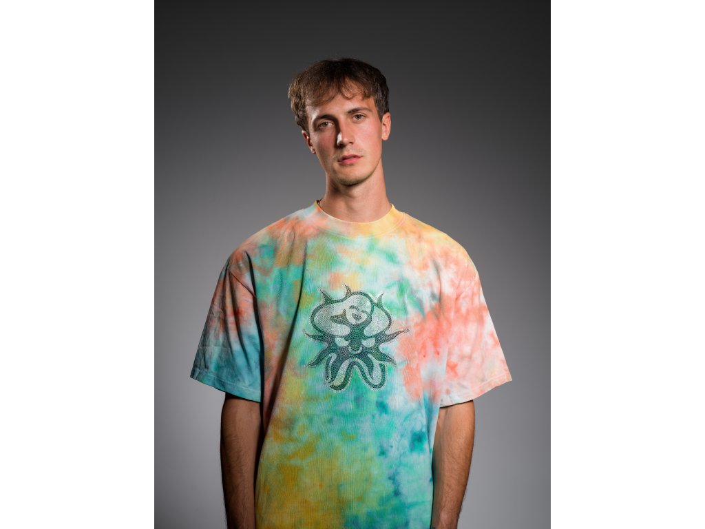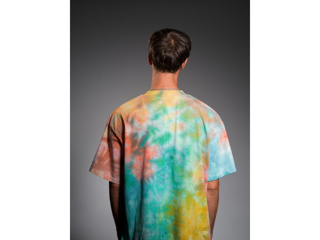Batikované oversized tričko s hlavním motivem zdobeným rhinestones (třpytivými kamínky, které krásně odrážejí světlo).